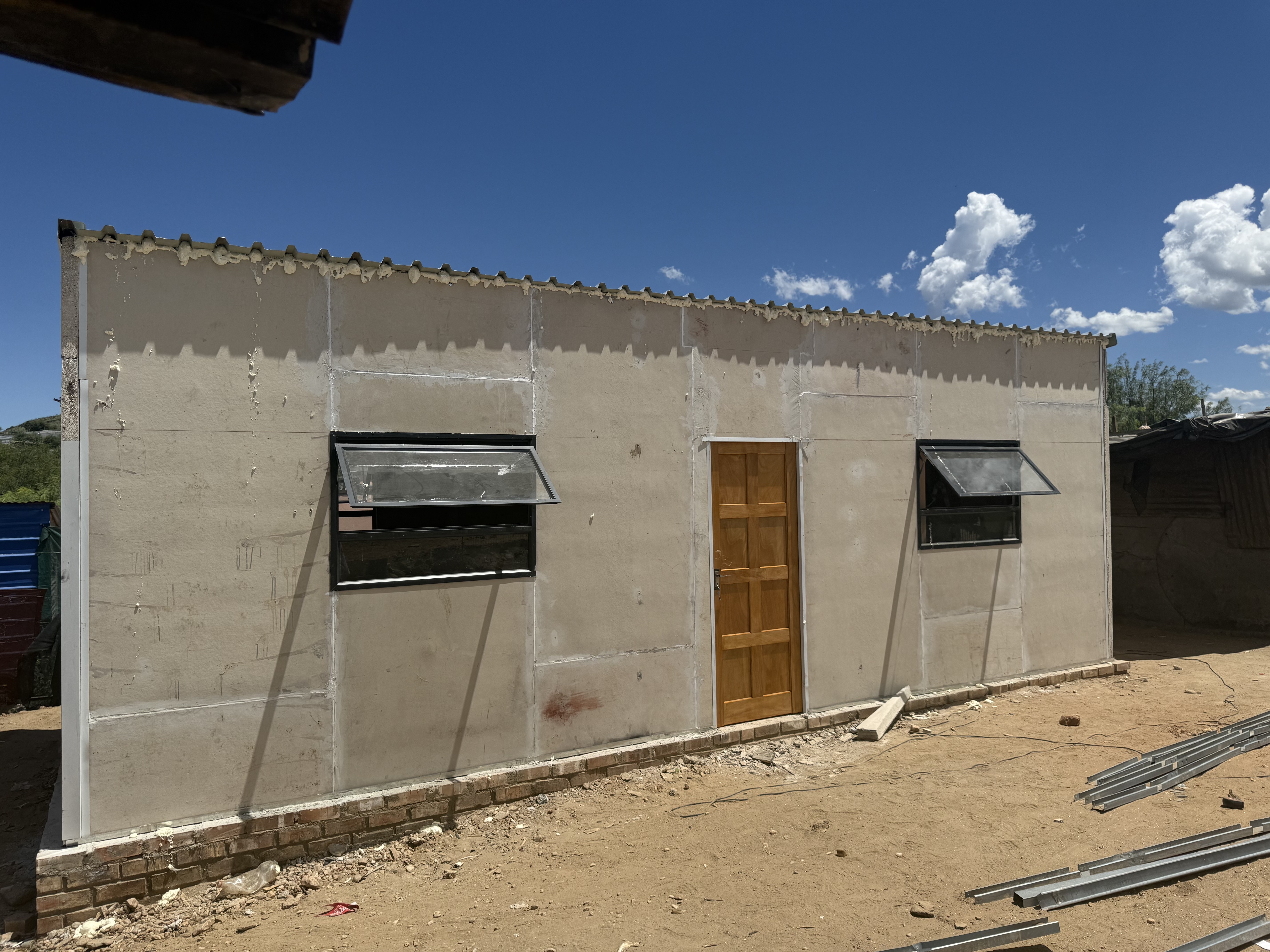 PMGS successfully constructed a 36m² two-bedroom residential unit in Windhoek, Namibia. The project was completed within an accelerated 3-day timeline, demonstrating rapid deployment construction capability while maintaining structural integrity and quality standards.